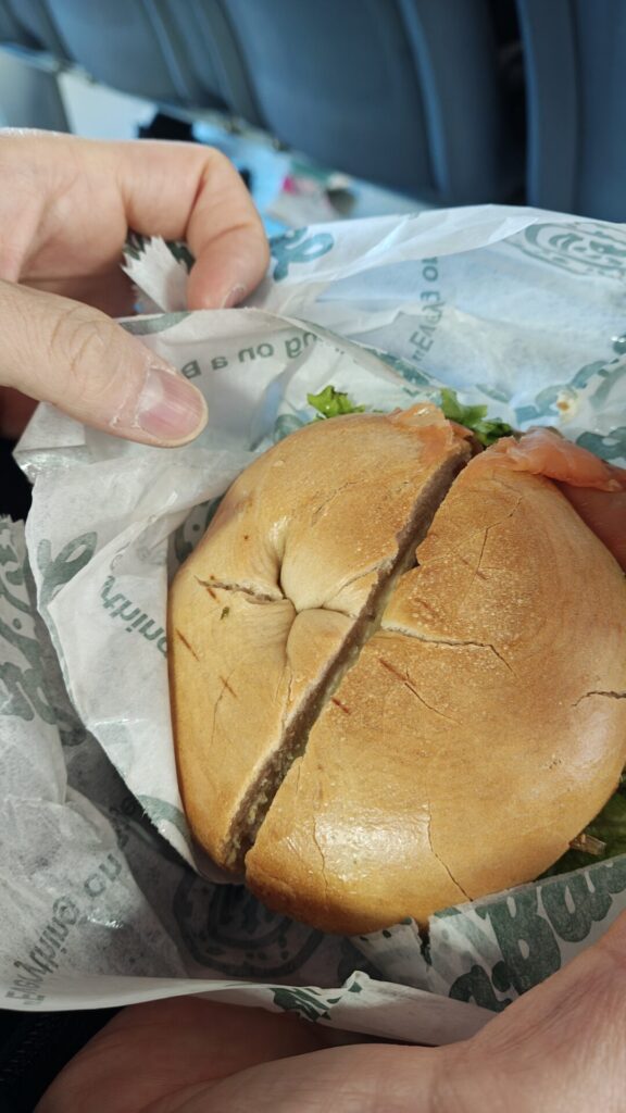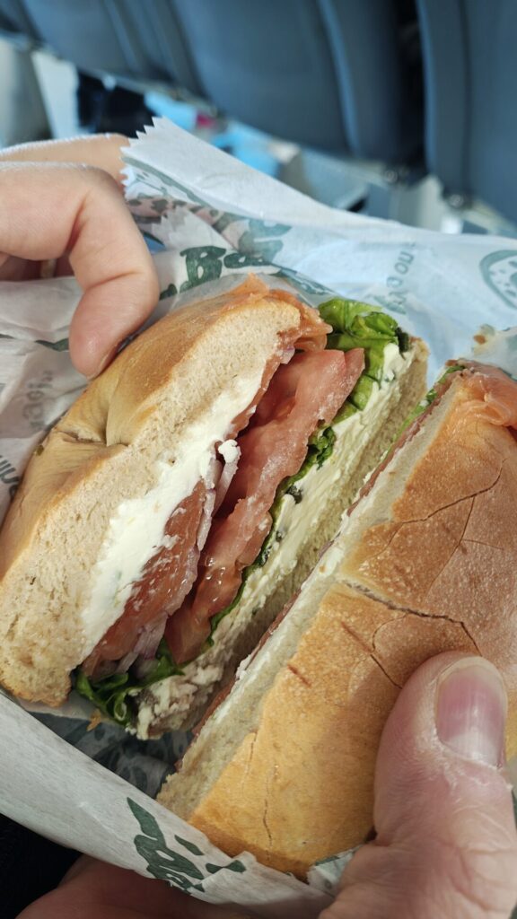 私はスモークサーモンの味をしっかり楽しみたいので、プレーンベーグルを選びました!
