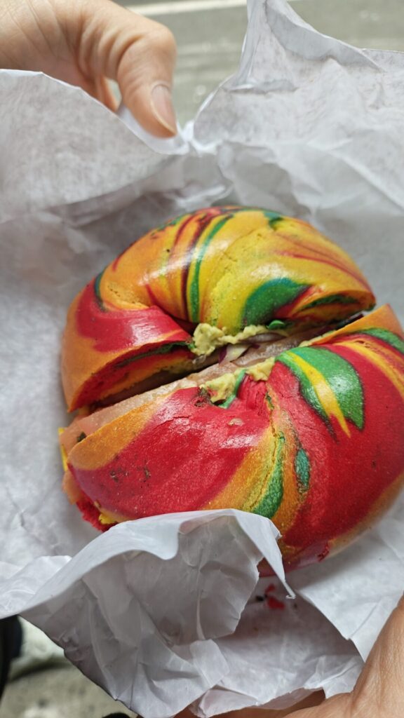 特に有名なのが、インスタ映え間違いなし?!のレインボーベーグル。