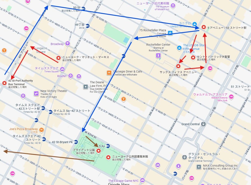 事前のミーティング時には行ってみたい場所として、NYを対岸から一望できる場所や、ミッドタウンにある大きな教会、地下鉄に乗ってみたい、映画でよく見るブライアント・パークに寄って、さらにはデパートも見てみたいと!