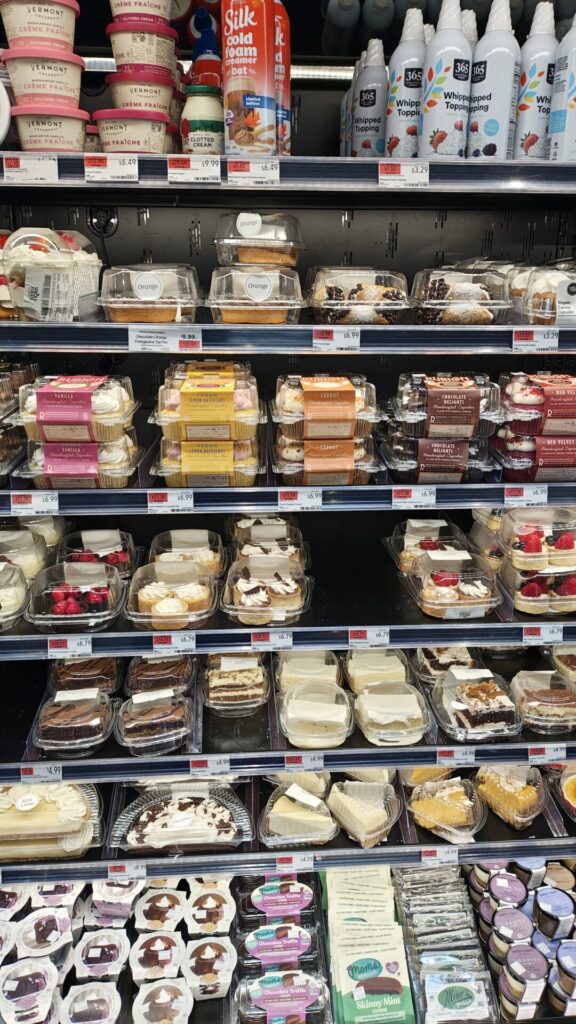 Whole Foods Marketではデザートも豊富だし、種類によっては日本みたいに一人用サイズもあるので嬉しいし、どんどん引き寄せられる理由となってしまうことも。。。www
