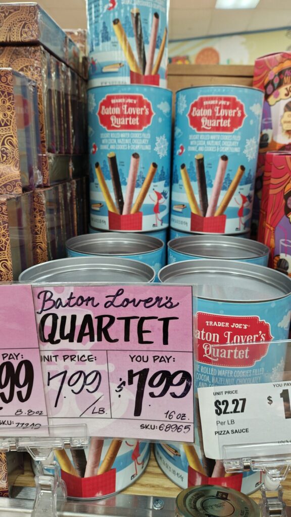 Trader Joe’s の Baton シリーズは、パッケージもかわいく味も安定のクオリティで、ホリデーギフトとしても自分用のおやつとしても満足度が高い商品です。