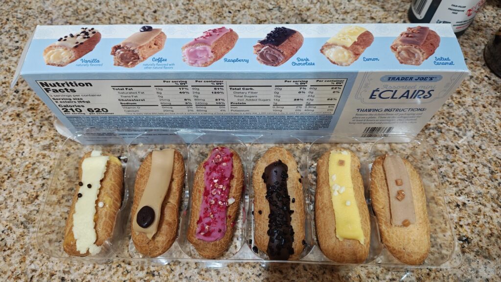 Trader Joe’s Assorted Mini Éclairs は、見た目・バリエーション・食べやすさの三拍子が揃った季節限定のスイーツ。