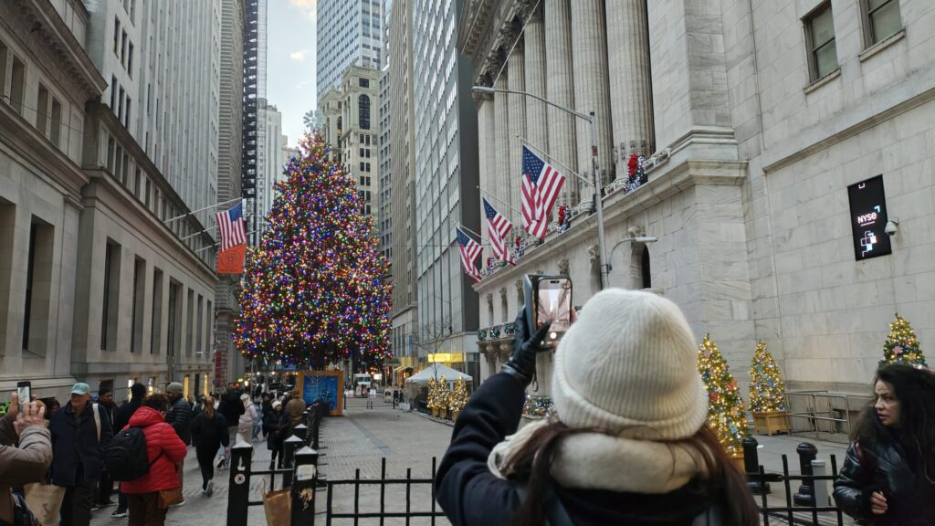 NY証券取引所へ~(クリスマスの時はどこもキラキラしていて綺麗ですよね☆)